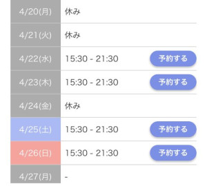 今週の出勤予定です
