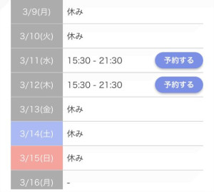 ◎出勤予定◎更新 2026/03/10 12:56:46|コメント:0件 あやなです???寒いですね~!せっかく春が来たと思ったのに、、、???今週の出勤日、追加しました?????水木金で、お待ちしていま~す(*´∀`*)女の子ページへ http://365diary.net/RGFadUVUL3R0L3NlY3JldC10b3VjaC80OTAxNjU2NA--